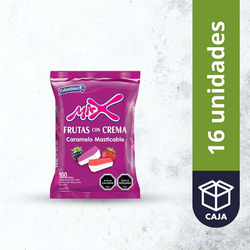 • Caramelos masticables max frutas con crema, bolsa de 100 unidades 430 gr